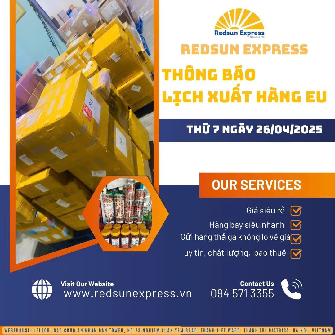 THÔNG BÁO LỊCH XUẤT HÀNG SANG CHÂU ÂU NGÀY 04.10.2025 RedSun Việt Nam trân trọng...