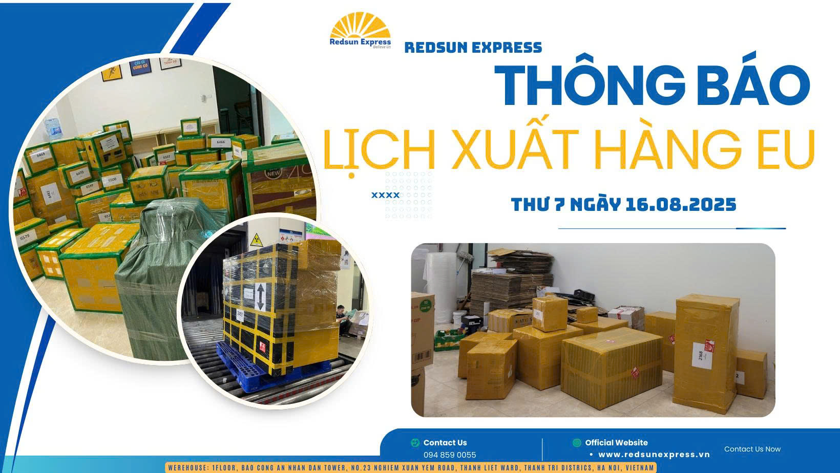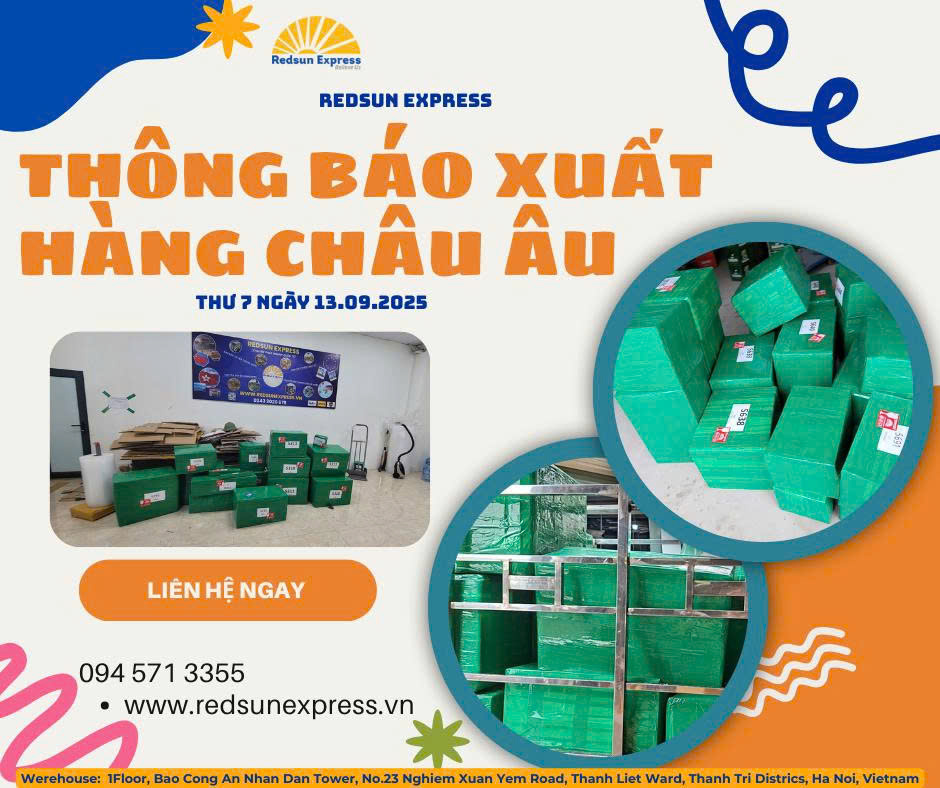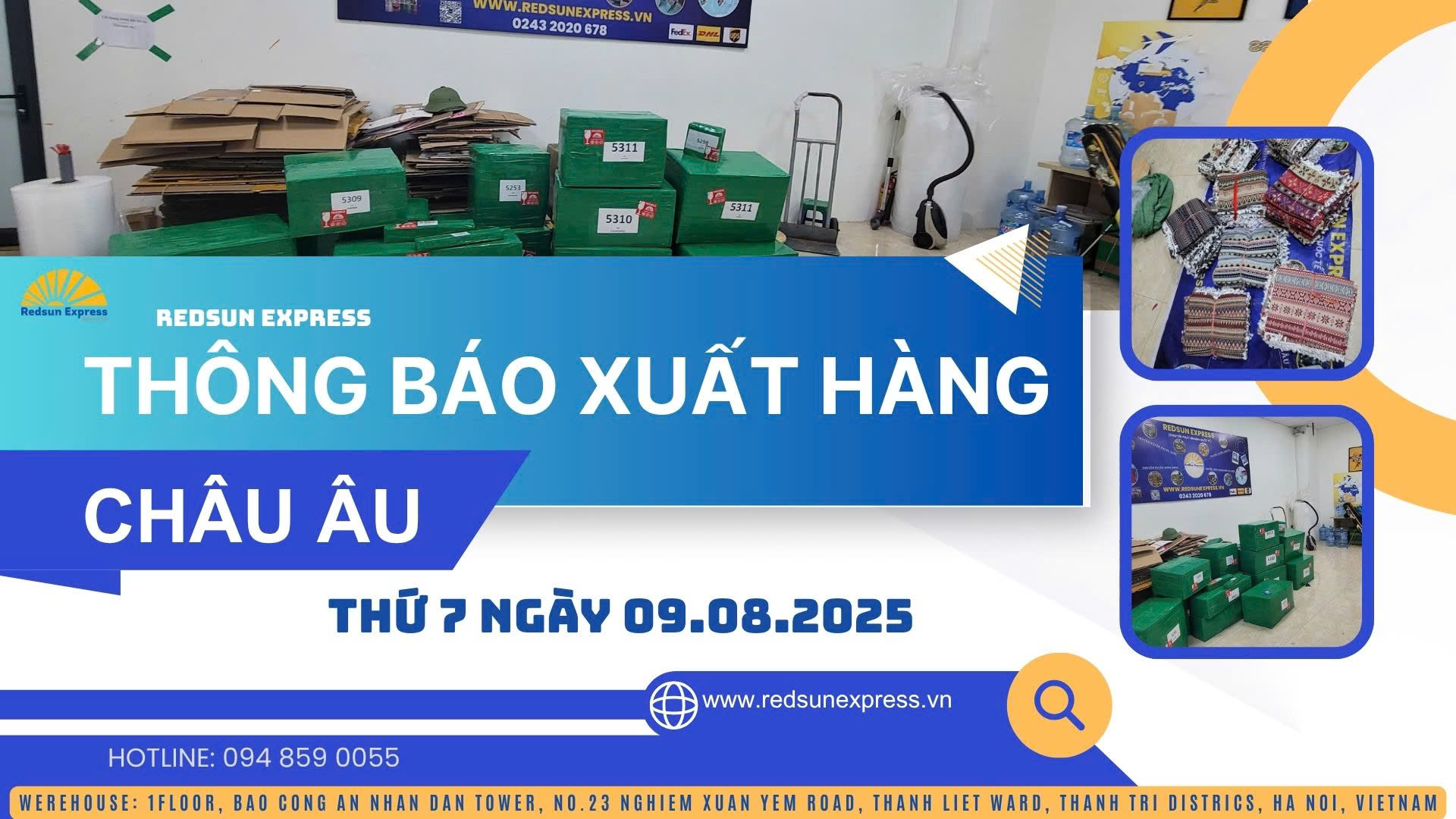 THÔNG BÁO LỊCH XUẤT HÀNG GỬI ĐI CHÂU ÂU NGÀY 09/08/2025 RedSun Việt Nam trân...