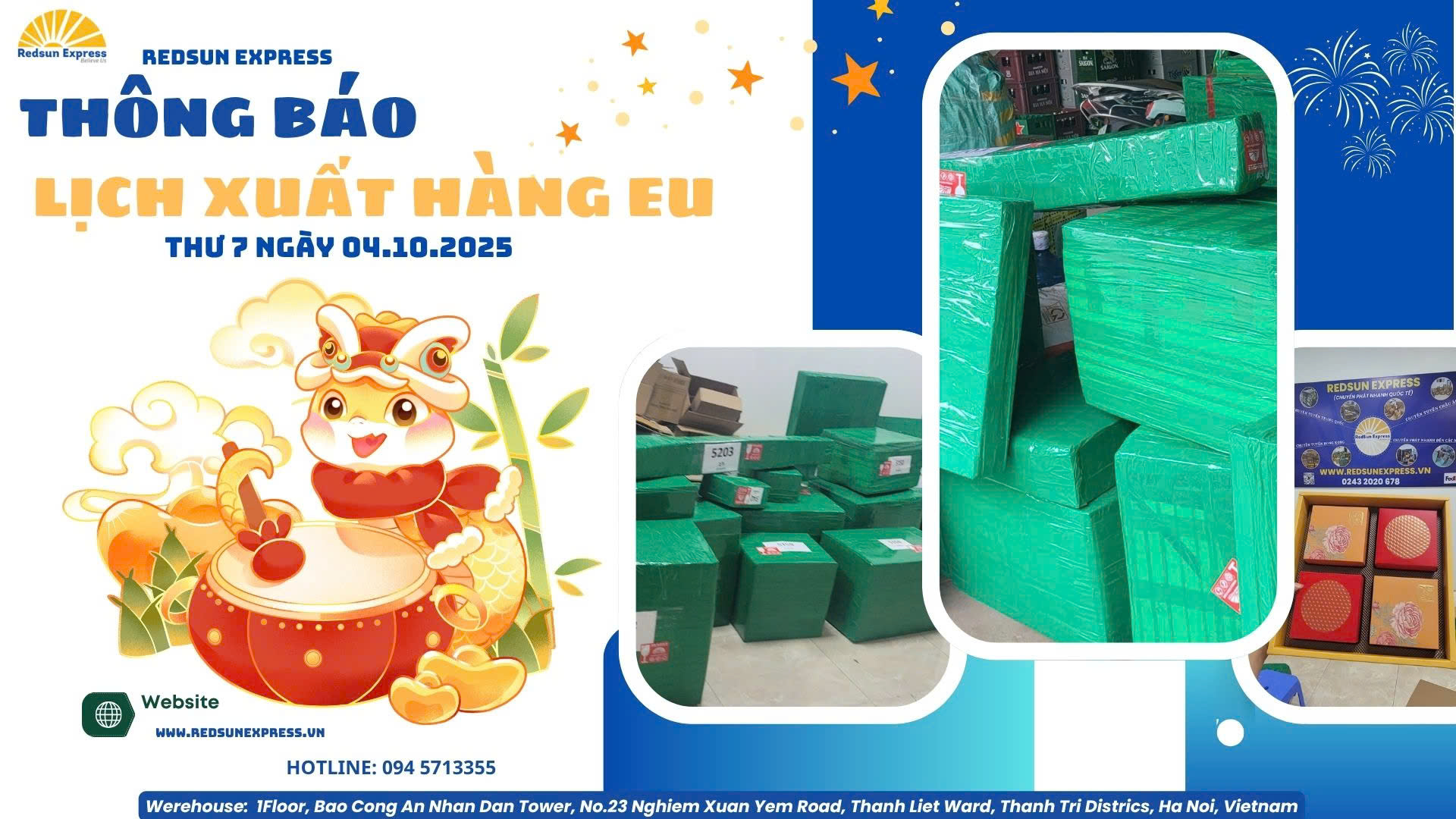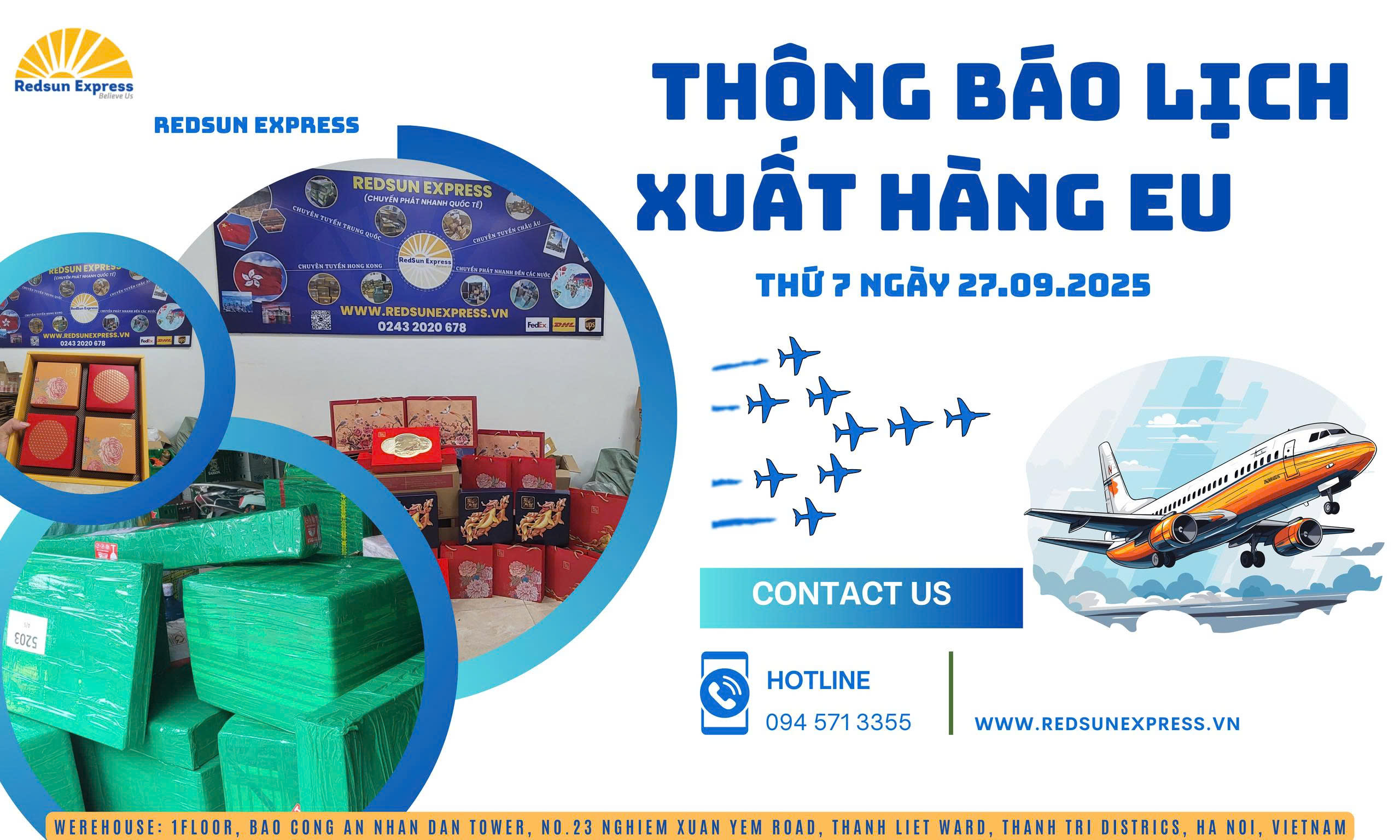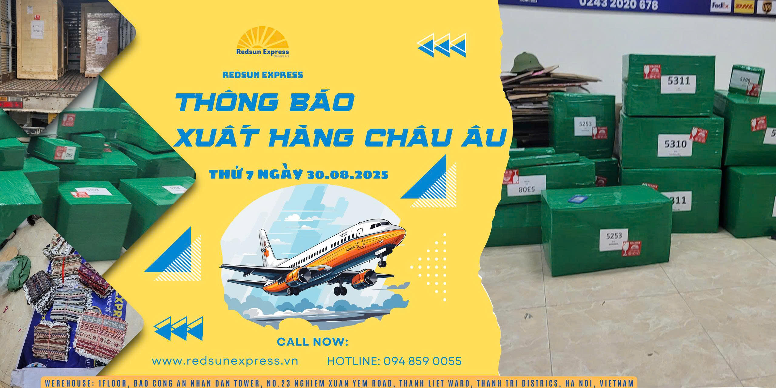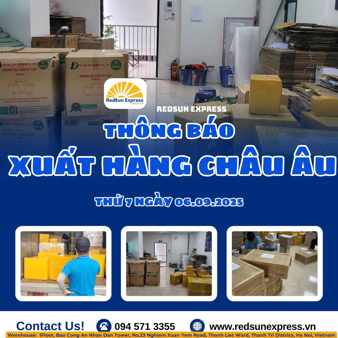 THÔNG BÁO LỊCH XUẤT HÀNG GỬI ĐI CHÂU ÂU NGÀY 30/08/2025 RedSun Việt Nam trân...