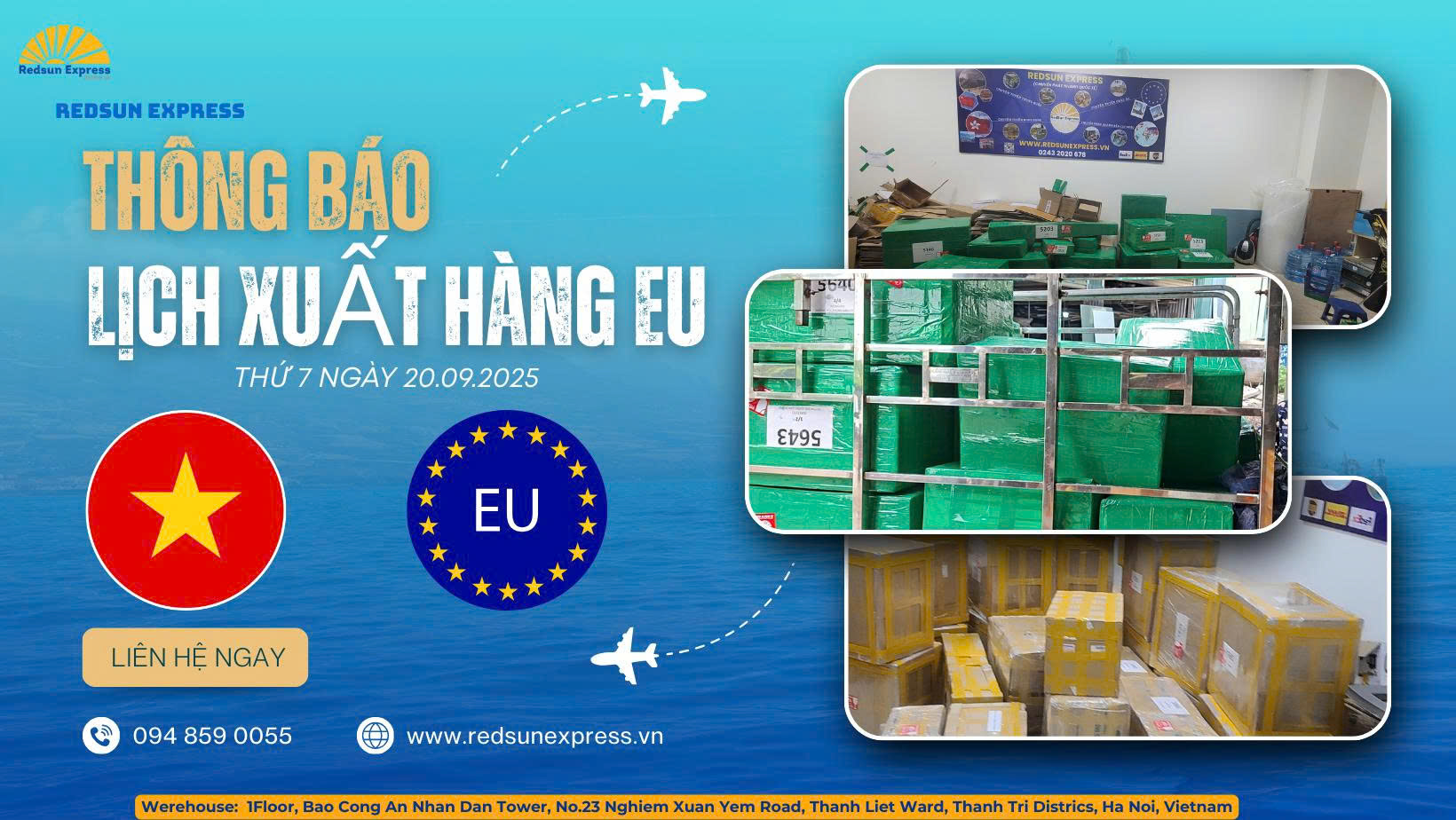RedSun Việt Nam xin trân trọng gửi thông báo lịch xuất hàng chuyên tuyến Việt Nam – Châu Âu vào trưa thứ 7, ngày 20/09/2025 cụ thể như sau: