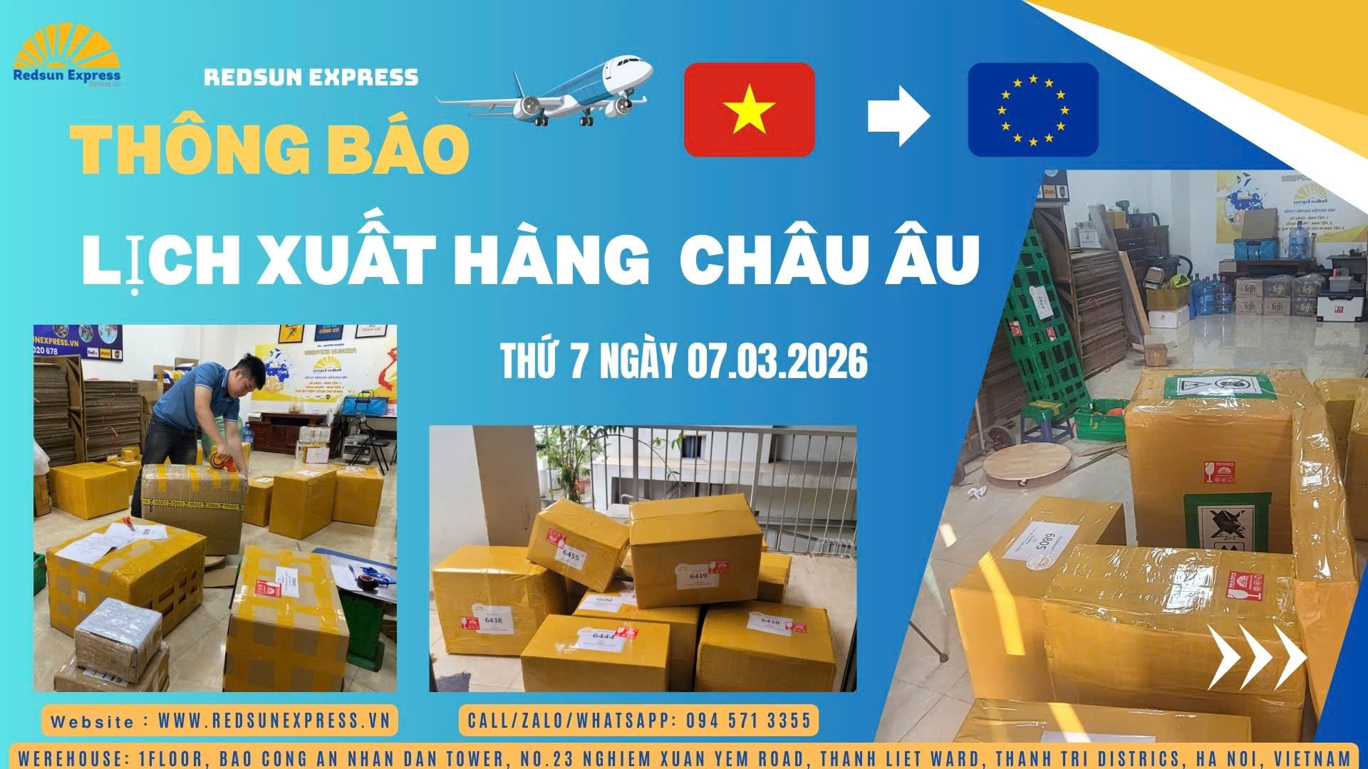 THÔNG BÁO XUẤT HÀNG EU THỨ 7 NGÀY 07.03.2026