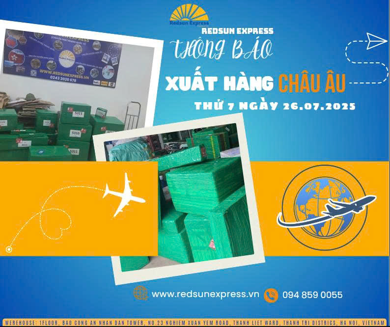 Công ty vận chuyển quốc tế RedSun Việt Nam xin trân trọng thông báo: XUẤT HÀNG CHÂU ÂU NGÀY 26/07/2025.